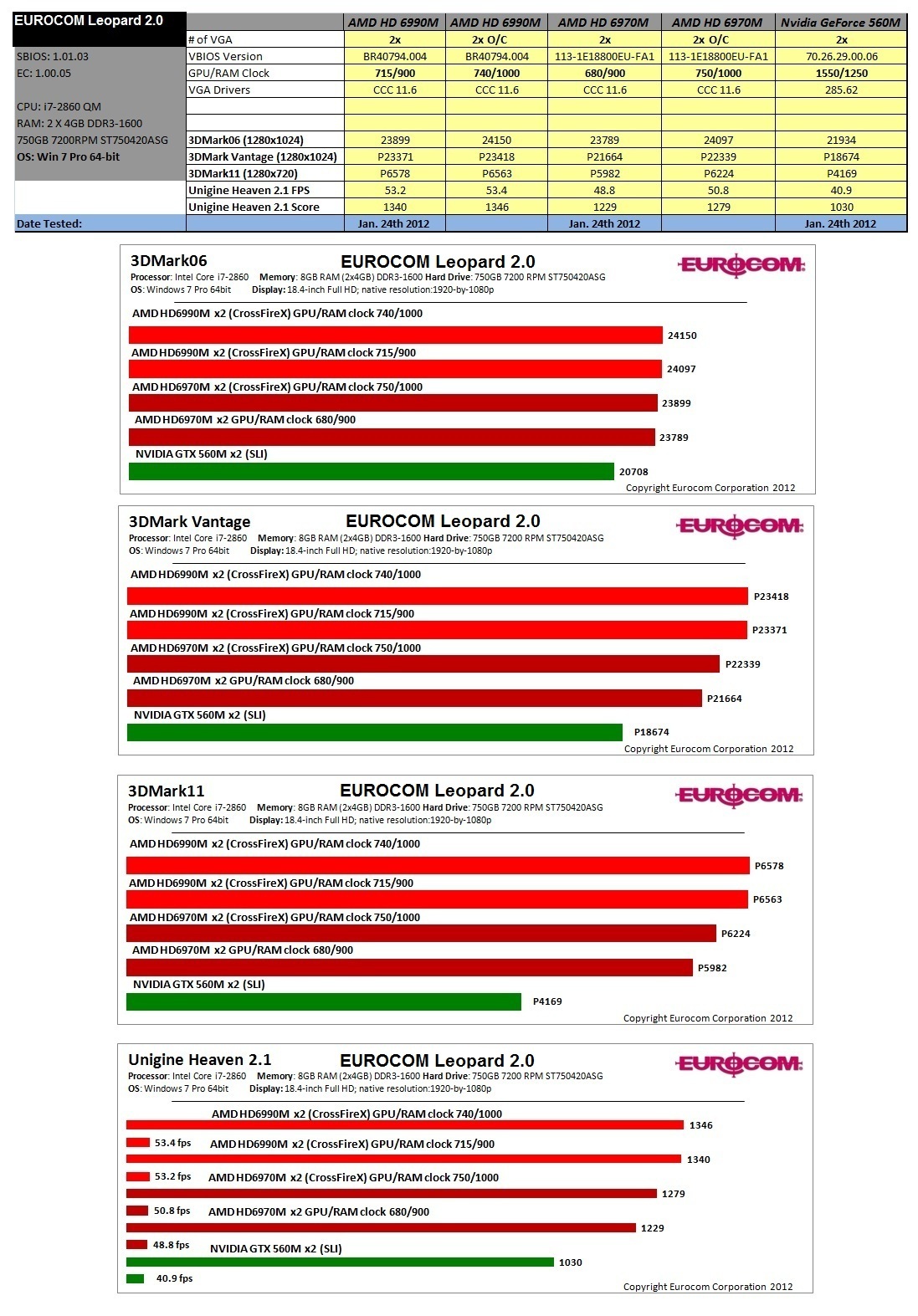 | Graphics AMD Radeon HD 6990M, 6970M CrossFireX, NVIDIA GeForce 560M SLI Testing in EUROCOM Leopard 2.0 Feb 01, 2012 Category: Performance |
