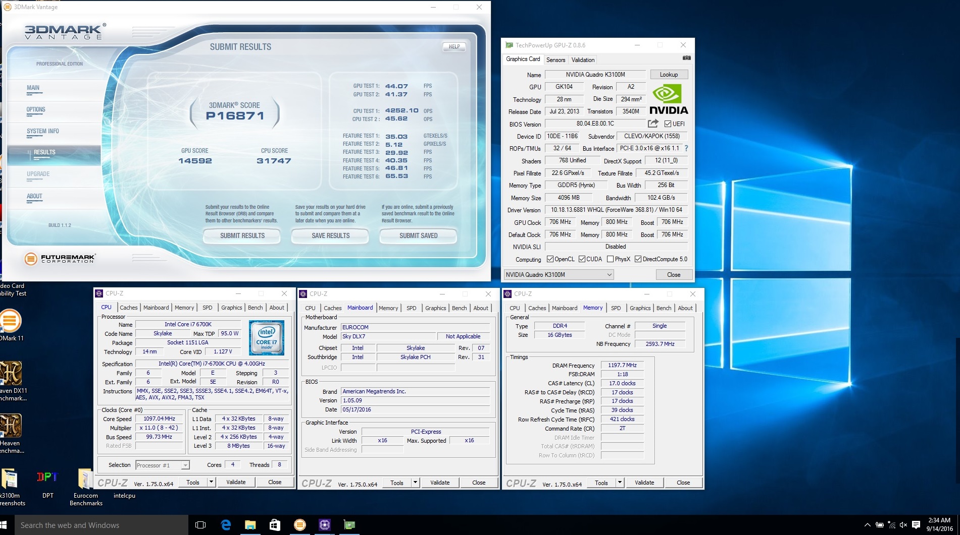 • EUROCOM Sky DLX7 - 3DMark Vantage - NVIDIA Quadro K3100M - Score: P16871