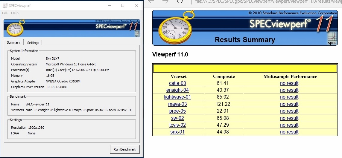 • EUROCOM Sky DLX7 - SPECViewPerf - NVIDIA Quadro K3100M