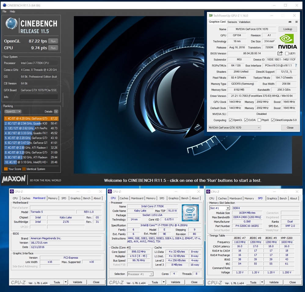 • EUROCOM Tornado F5 - NVIDIA GeForce GTX 1070 - Intel Core i7 7700K - CINEBENCH