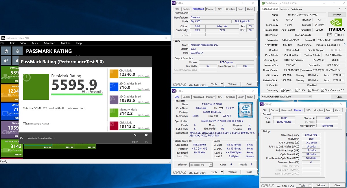 • EUROCOM Sky X9E3 - PerformanceTest 9 - NVIDIA GeForce GTX 1080 - 5595.9 (98th Percentile)