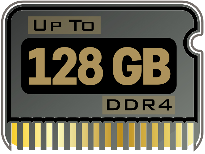 • Memory: up to 128GB; DDR4 ECC (with Xeon) or non-ECC (with i7/i9); 4x SODIMM sockets