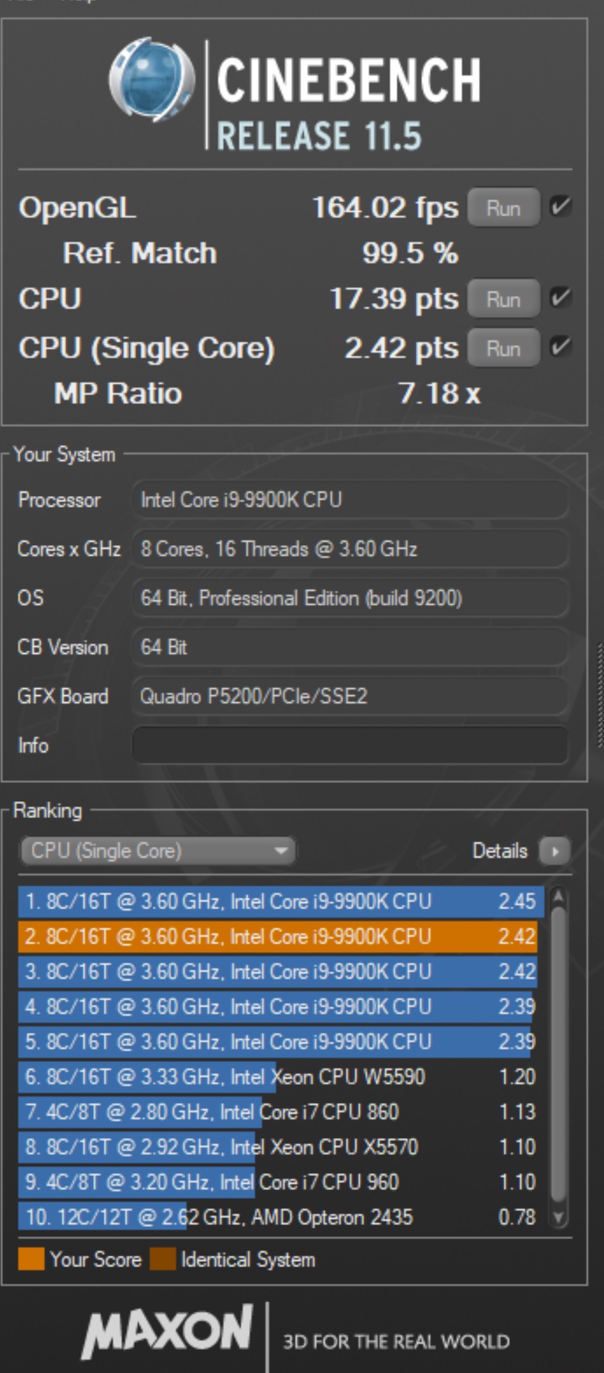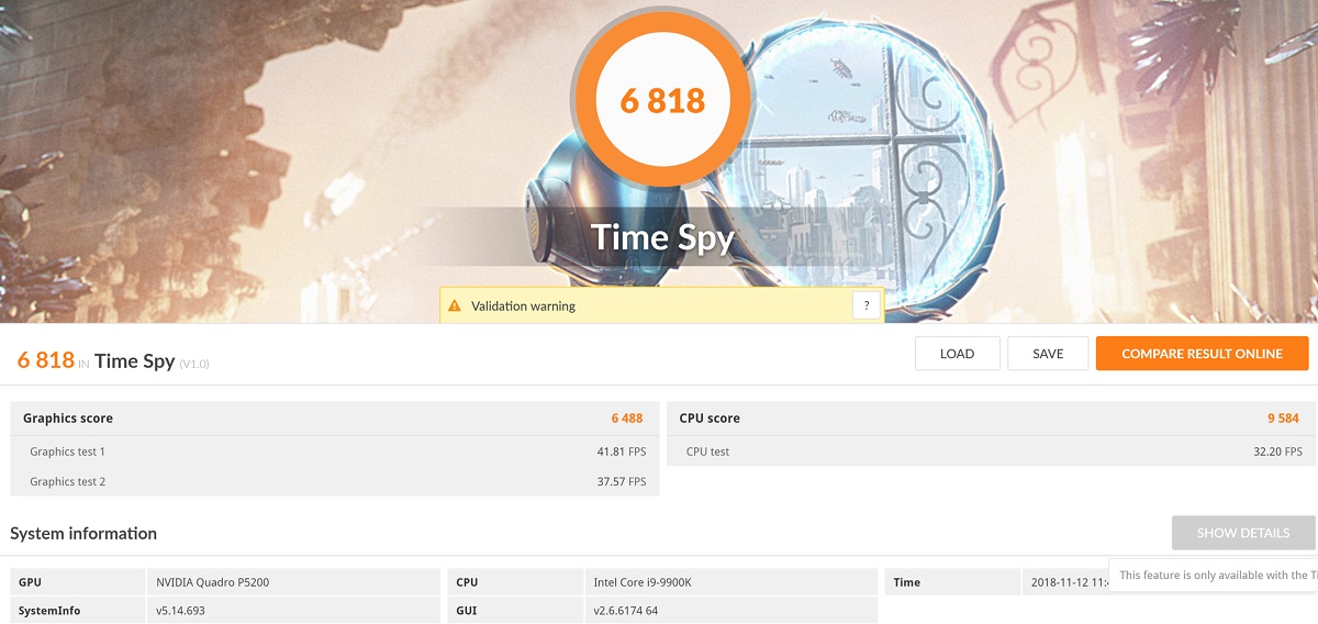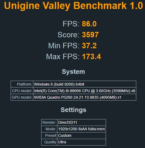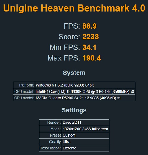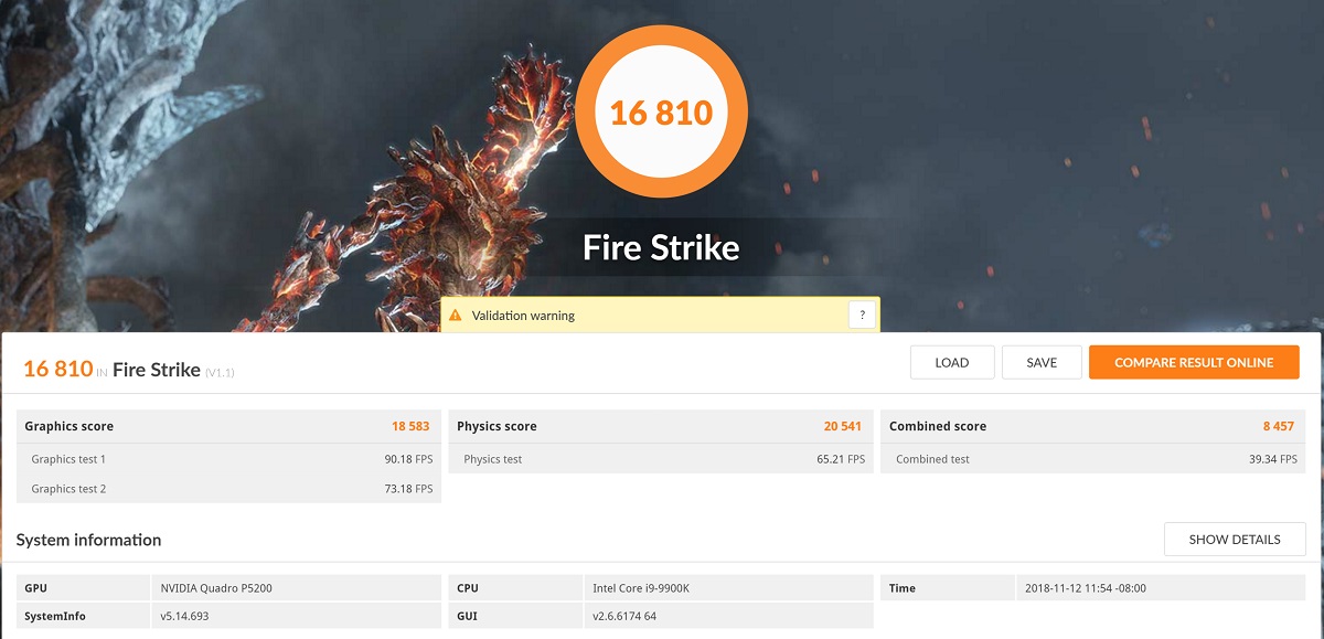 • Tornado F7 Mobile Workstation with i9-9900K (8C/16T) and Quadro P5200