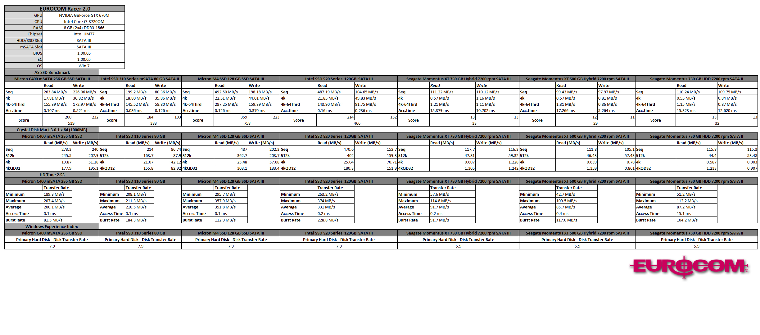 | Storage EUROCOM Racer 2.0 BenchmarksmSATA, SSD, HDD storage testing Aug 02, 2012 Category: Storage |