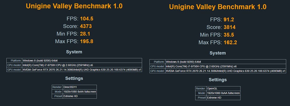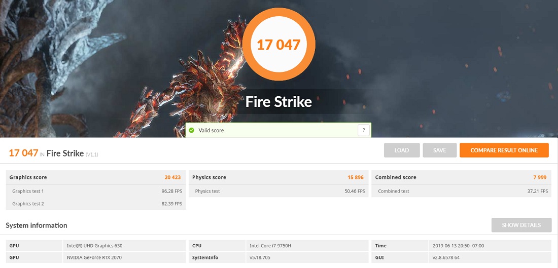 Computer: EUROCOM Nightsky RX17 CPU: Intel Core i7-9750H (Coffee Lake-H, U0) 2600 MHz (26.00x100.0) @ 3991 MHz (40.00x99.8) Motherboard: Eurocom Nightsky RX17 BIOS: 1.07.11TEU1, 02/01/2019 Chipset: Intel HM370 (Cannon Lake-H) Memory: 16384 MBytes @ 1330 MHz, 18-18-18-43 - 16384 MB PC24000 DDR4 SDRAM - Corsair CMSX32GX4M2A3000C1 Graphics: Intel UHD Graphics 630 (Coffee Lake-H GT2) - Integrated Graphics Controller Intel UHD Graphics 630, 1024 MB Graphics: NVIDIA GeForce RTX 2070 (TU106M) NVIDIA GeForce RTX 2070, 8192 MB GDDR6 SDRAM Drive: Samsung SSD 970 PRO 512GB, 500.1 GB, NVMe Sound: Intel Cannon Lake-H/S - cAVS (Audio, Voice, Speech) [B0] Sound: NVIDIA TU106 - High Definition Audio Controller Network: Intel Cannon Lake-H/S - CNVi: WiFi (sku 0) [B0] Network: RealTek Semiconductor RTL8168/8111 PCI-E Gigabit Ethernet NIC OS: Microsoft Windows 10 Professional (x64) Build 17763.253 (1809/RS5) |