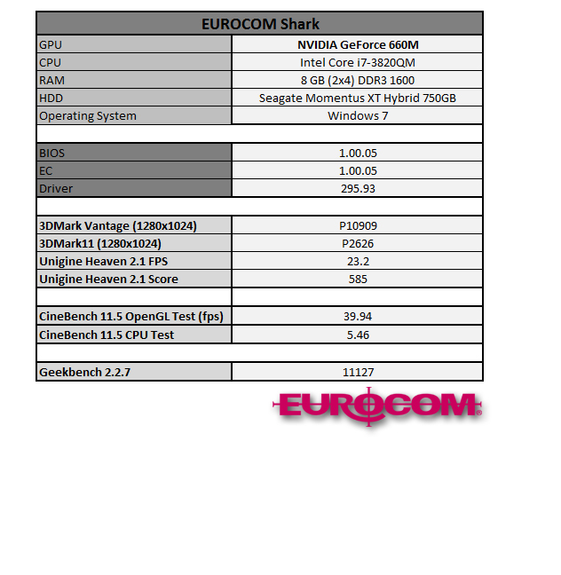 EUROCOM Shark comes with choice of 15.6-inch and 17.3-inch displays; 2GB DDR5 of NVIDIA GeForce GTX 660M (Kepler), the newest Intel HM77 Mobile Chipset, the Intel fastest Ivy Bridge processors, fast spinning hard drives, Blu Ray drives and wide range of wireless options.