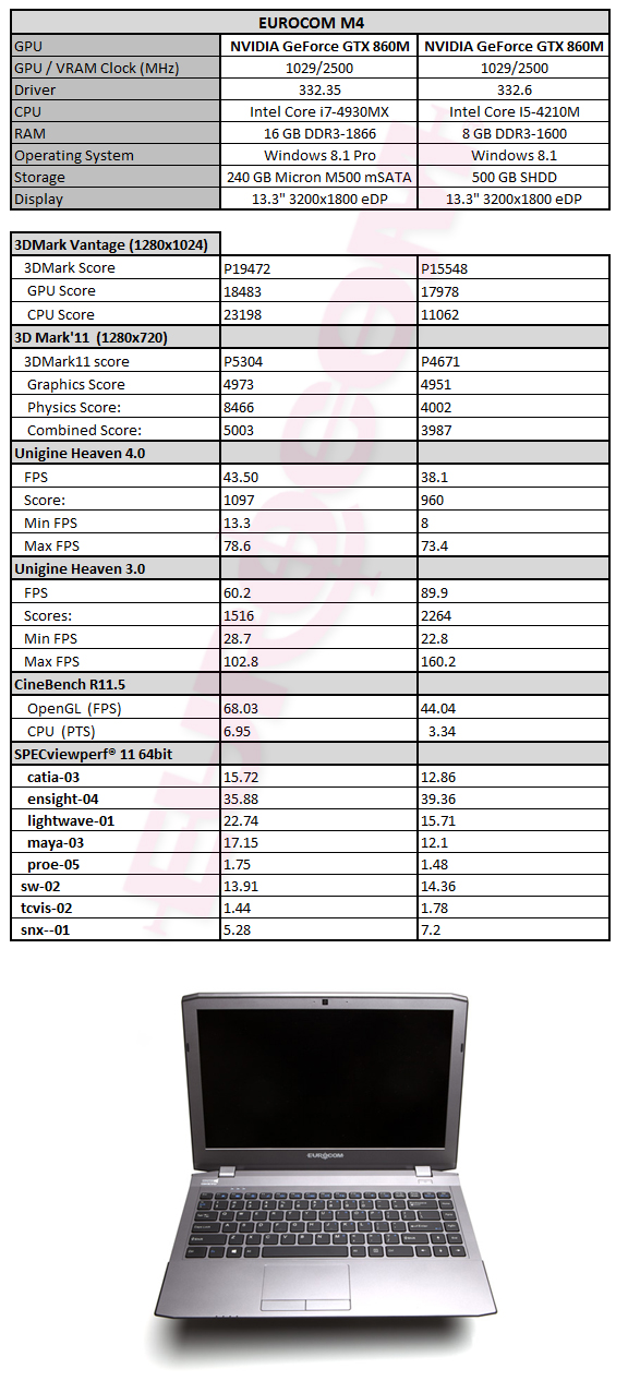 • NVIDIA GeForce GTX 860M - Intel Core i7-4930MX & Intel Core i5-4210M - EUROCOM M4