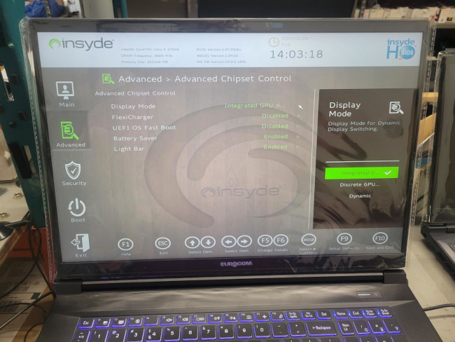 Raptor X18 and Raptor X16 are equipped with NVIDIA Advanced Optimus Dynamic Display Switching Hybrid Mode. This means the laptop allows switching between iGPU and dGPU.