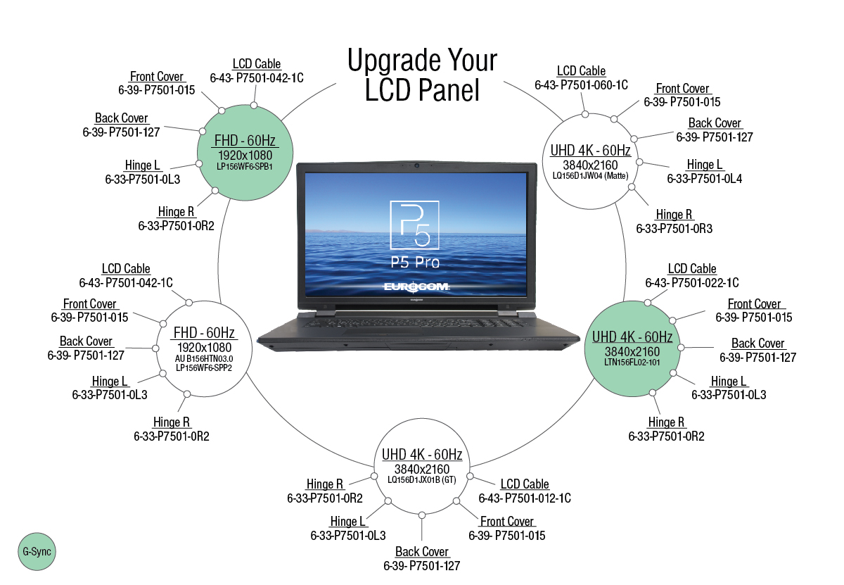 | LCD Upgrade Chart: EUROCOM Q5 / P957HR |