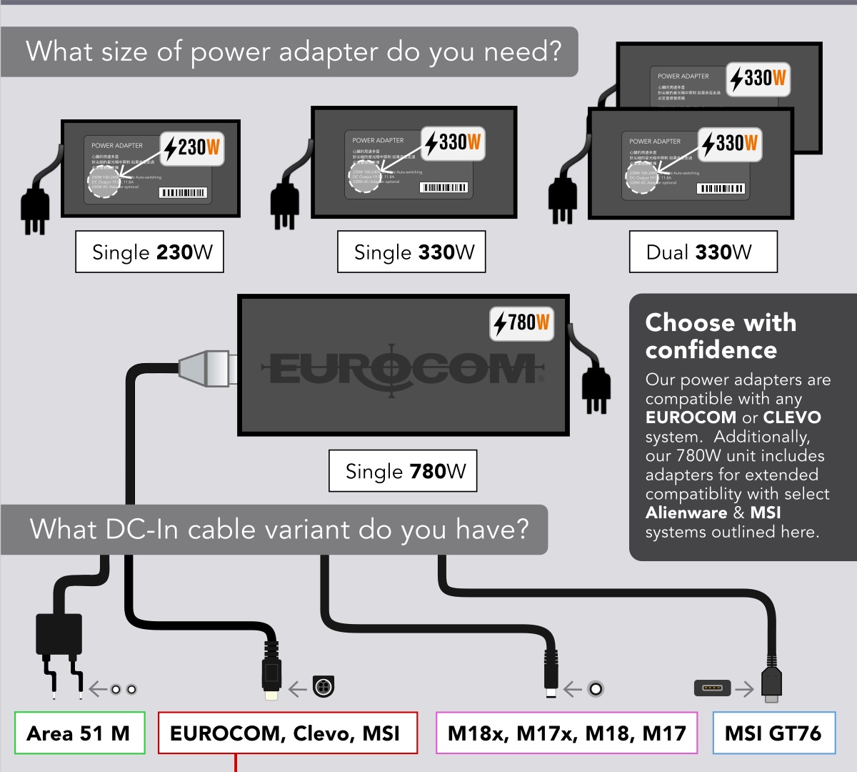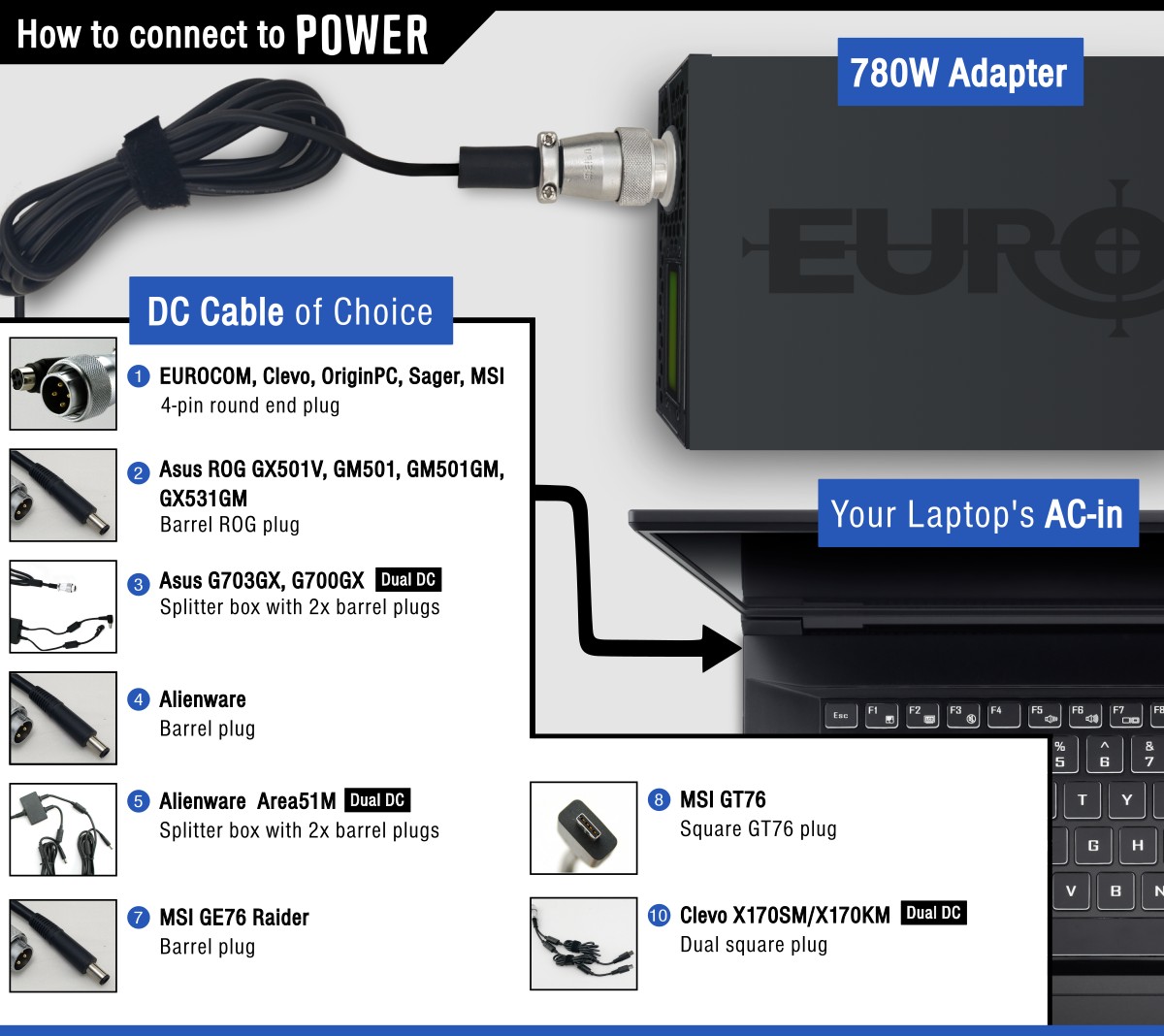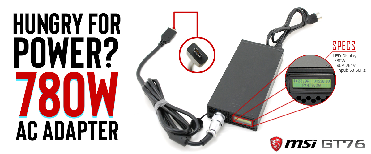 "The 780W AC adapter brings an unprecedented level of convenience to owners of high performance professional and gaming laptops that would normally require two 280W or 330W AC adapters.