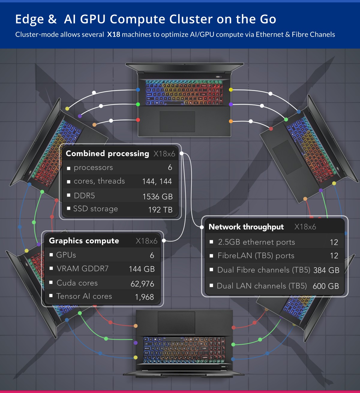 Perfect for professionals who need enterprise-level networking capabilities - or military grade GPU compute - in dynamic environments, the Raptor X18's versatile port configuration accommodates complex networking topologies while maintaining exceptional performance for your most demanding, time-sensitive operations.