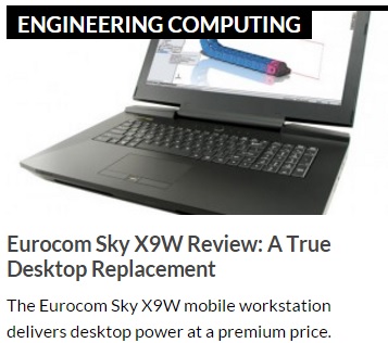 Eurocom has consistently delivered exceedingly powerful mobile systems. Last year, the Canadian company sent us its P5 Pro mobile server (deskeng.com/de/?p=24638), a computer that delivered blazingly fast performance at a premium price. To start off 2016, Eurocom sent us its new Sky X9, a system the company says is the most powerful mobile workstation ever made. With a claim like that, we couldn’t wait to put the Sky X9 through its paces.