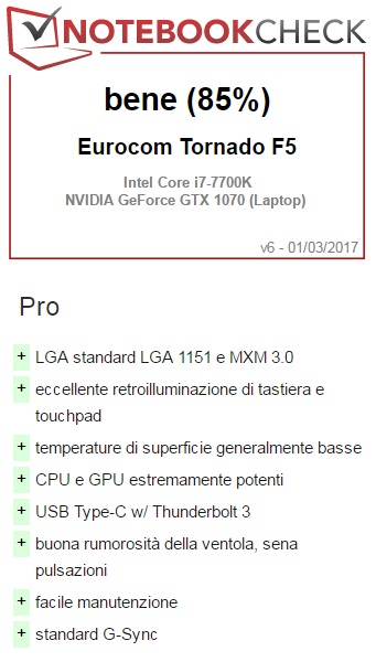 Recensione breve del Portatile Eurocom Tornado F5