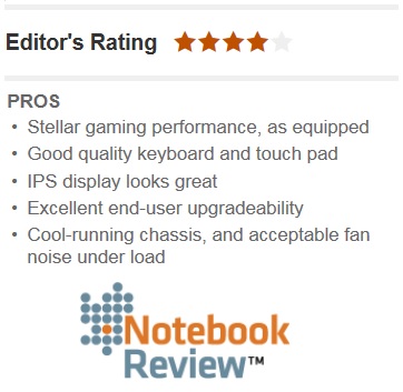 This notebook has some of the best end-user upgradeability we’ve seen, and packs a tremendous amount of power. It may not win many design awards, but it’s king of the hill when it comes to performance in a 15.6-inch chassis.